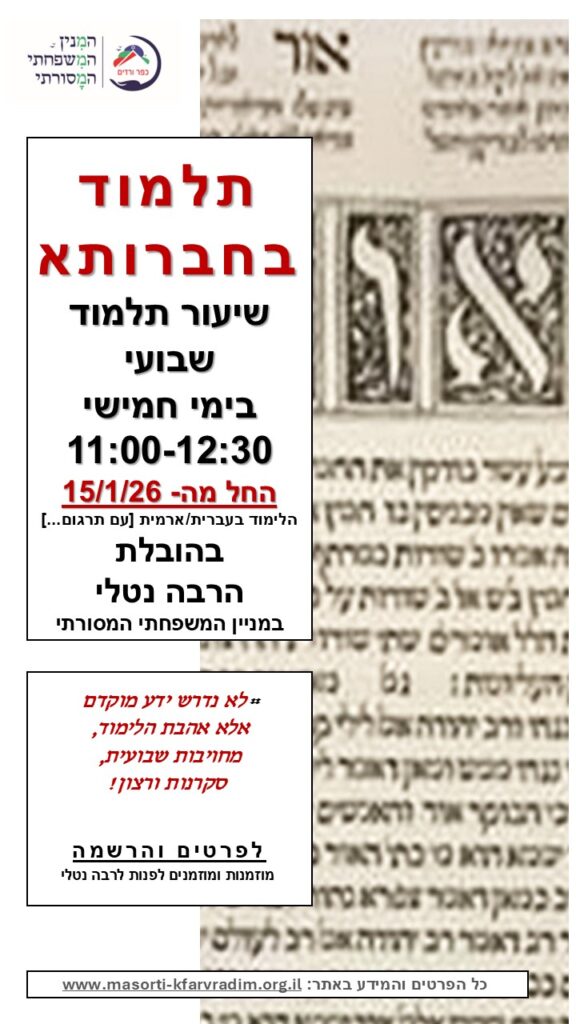 שיעור תלמוד בחברותא – ימי ה 11.00-12.30