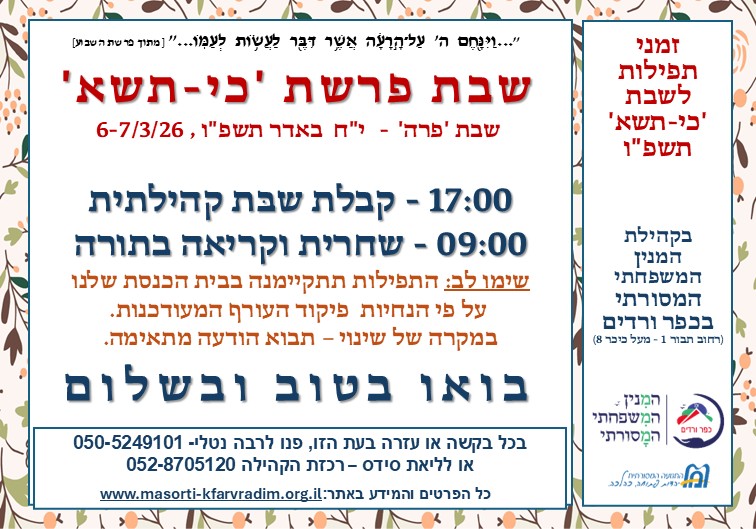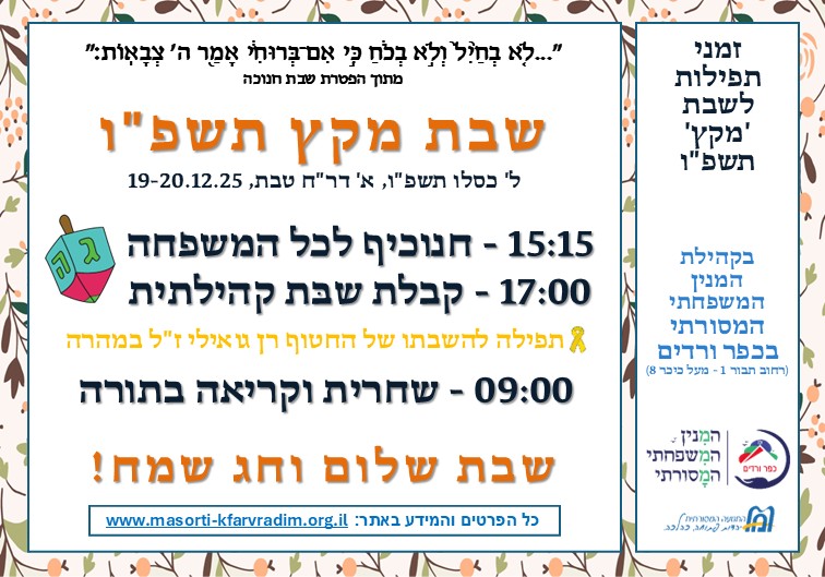 בינתיים יש כאן מידע בסיסי על הקהילה ומידע מלא על חגי תשרי תשפ"ה.